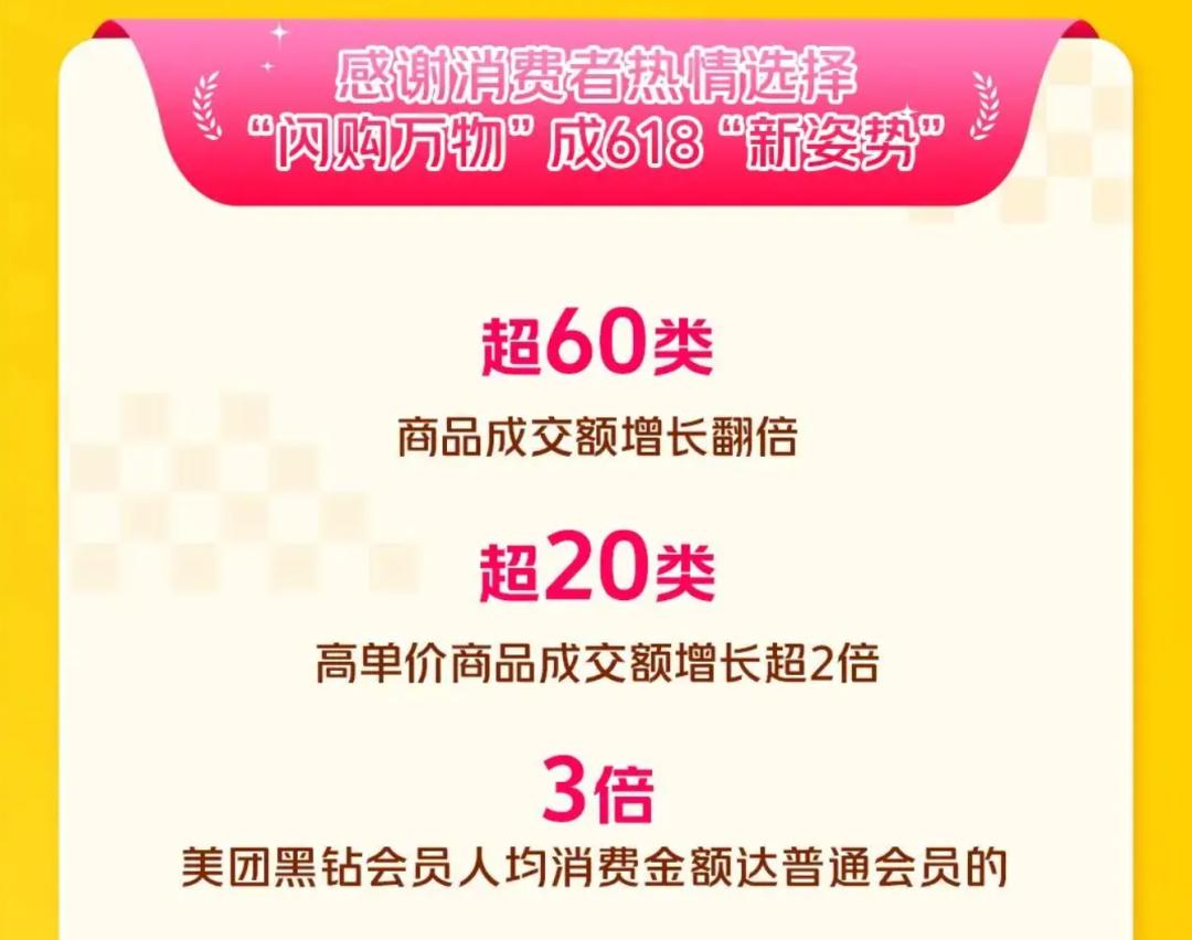 根据美团闪购今年公布的618 战报,大促期间,美团黑钻会员的人均消费金额是普通会员的 3 倍。