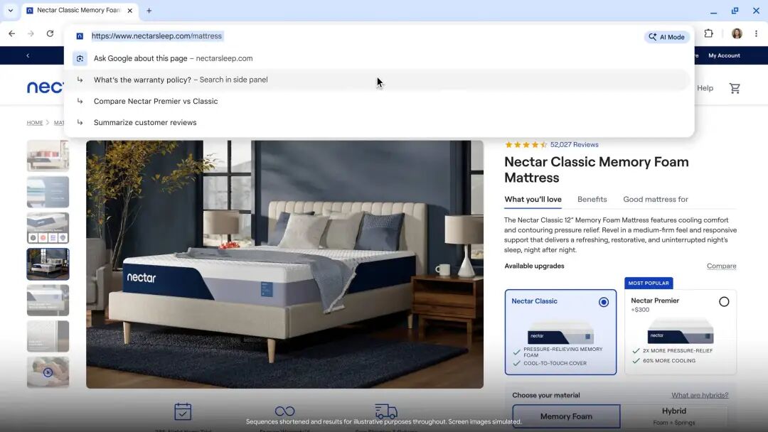 Google 的 AI Mode 在搜索框也会主动地给用户提供问题