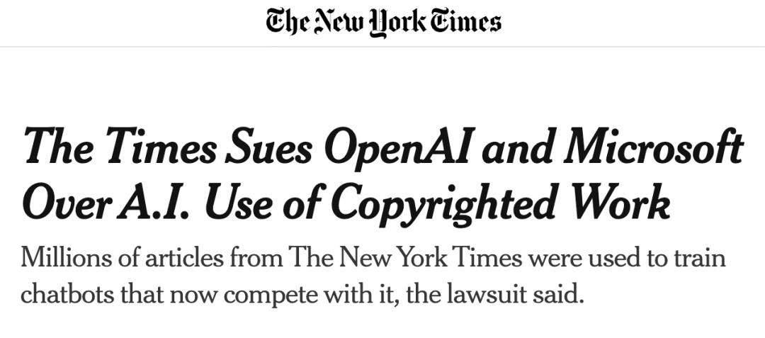 数据,是大模型的核心,纽约时报曾起诉 OpenAI 利用其内容,训练 AI 机器人。原文链接: https://www.nytimes.com/2023/12/27/business/media/new-york-times-open-ai-microsoft-lawsuit.html