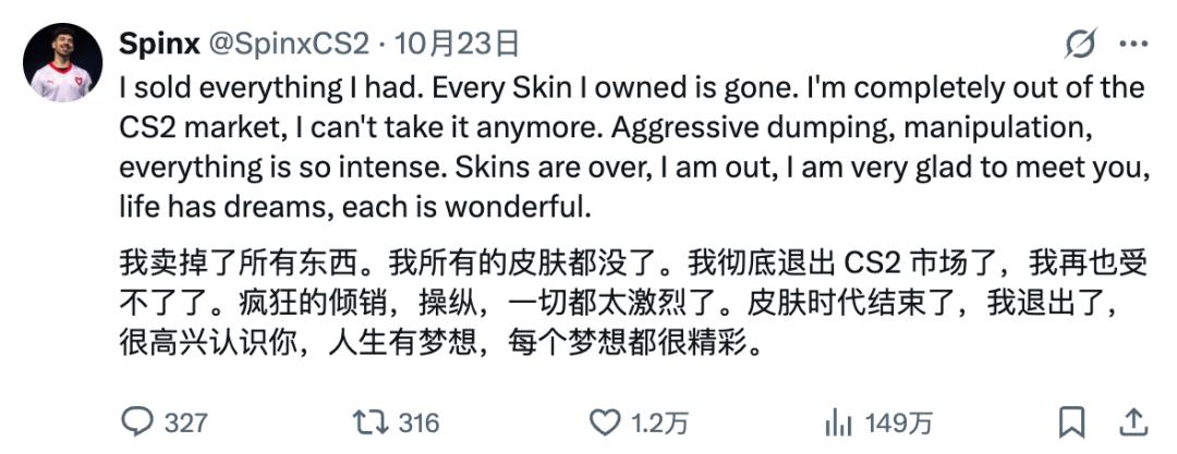 信息造假在这里是一种被看作是规则内的常态,为了赚钱,操盘手可以给你每天发送某个职业选手去世的讣告,只为了把某件饰品价格炒起来。