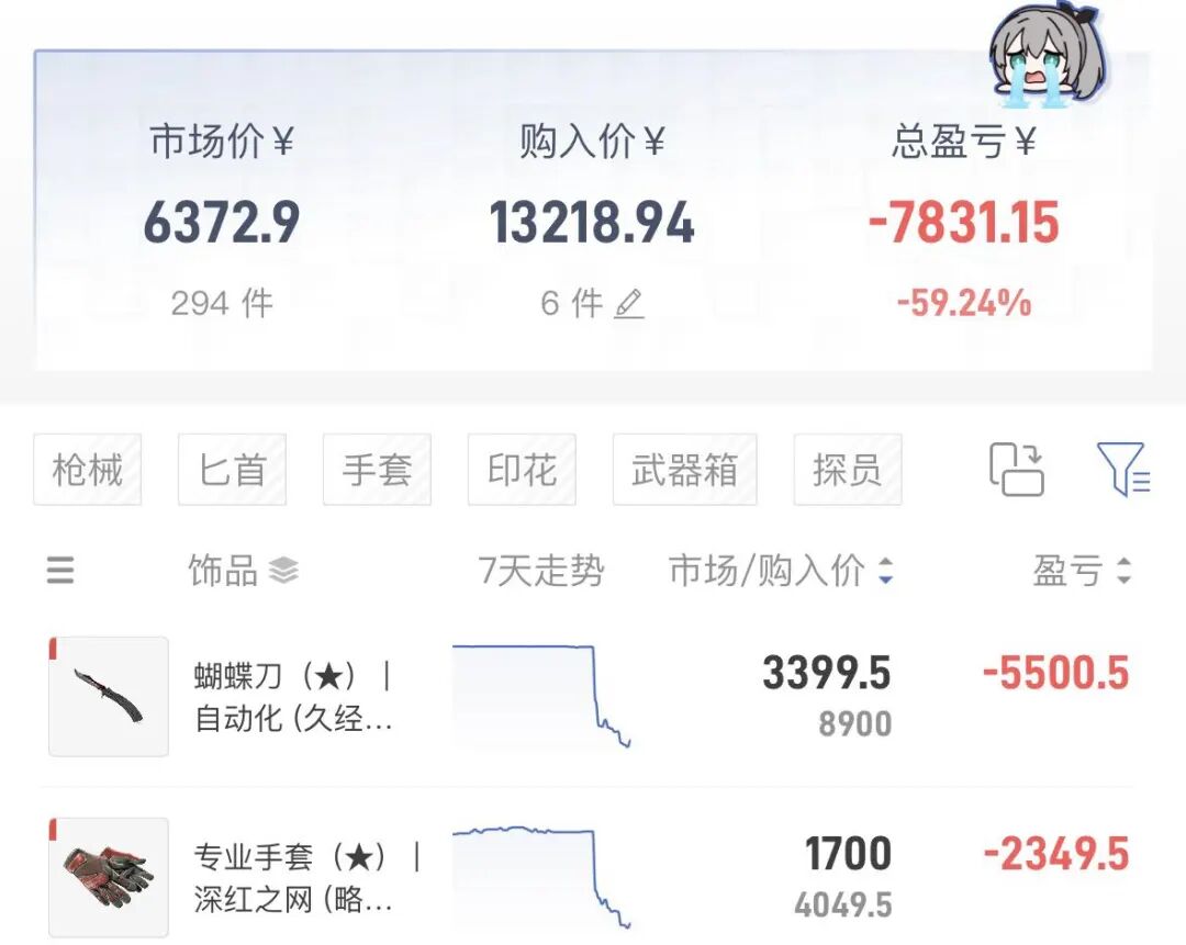 但是,刻板印象终究只是镜花水月,CS 饰品当然不是什么稳赚不赔的投资品。
