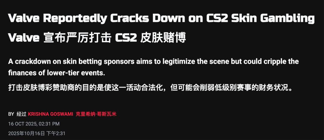 CS 饰品开始被第三方博彩公司盯上,还牵扯到了未成年赌博,V 社虽然身处“自由美利坚”,但这件事它可担当不起,于是发布警告,不少博彩网站关门。