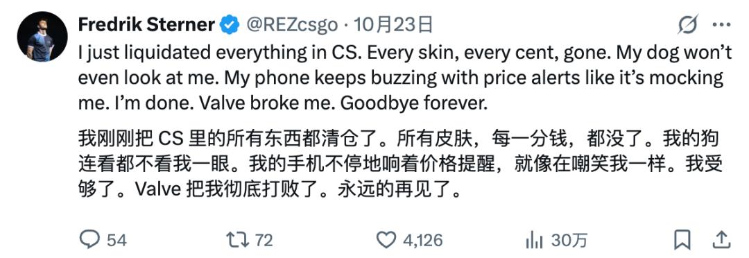 这家公司关注社区,已经算是大家默认的了,而 CS 饰品在这几年,变得离普通玩家越发遥远,它的投资品属性开始大于虚拟商品属性,这就是V社不想看见的局面了。