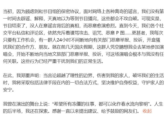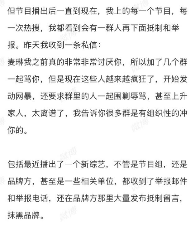 麦琳发文讲述节目播出后自己的遭遇。(图/社交媒体截图)