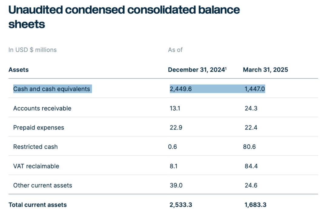 Nebius长期奉行谨慎的财务策略,没有进行过度的举债扩张。截至2025年第一季度,公司手握约14亿美元现金,而负债几乎可以忽略不计。