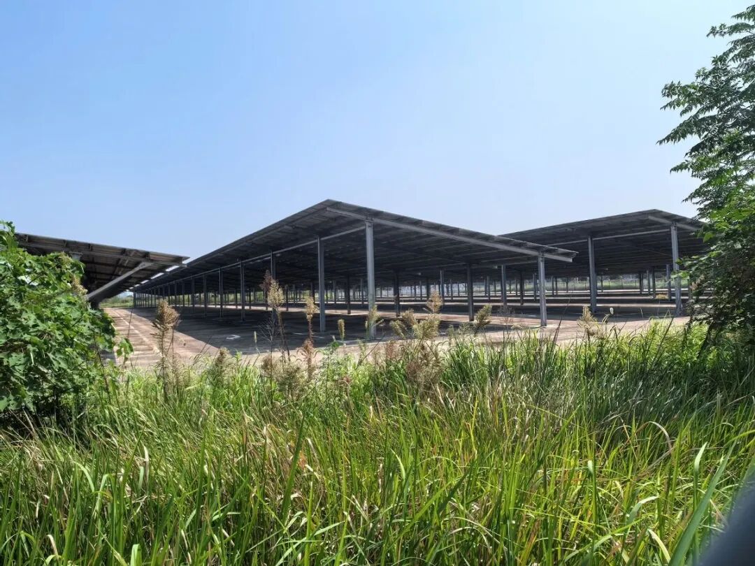 很快就到了黄冈高新区的威马星晖工厂,跟今年年初媒体报道的情况大差不差,我开车绕着整个厂区转了一圈,这座占地面积1045亩的厂区一片沉寂,依旧没有任何“复活”的迹象。后面偌大的停车棚依旧空荡荡的。