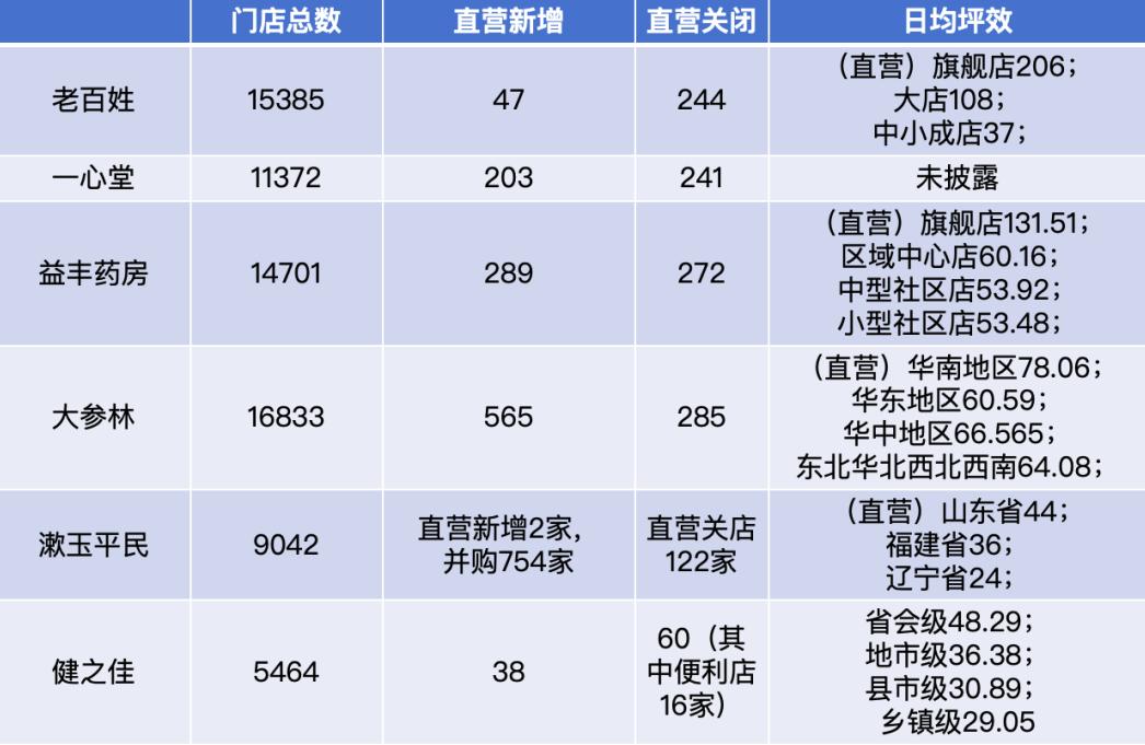 六家零售药店上市公司中,有四家公司门店规模缩减。