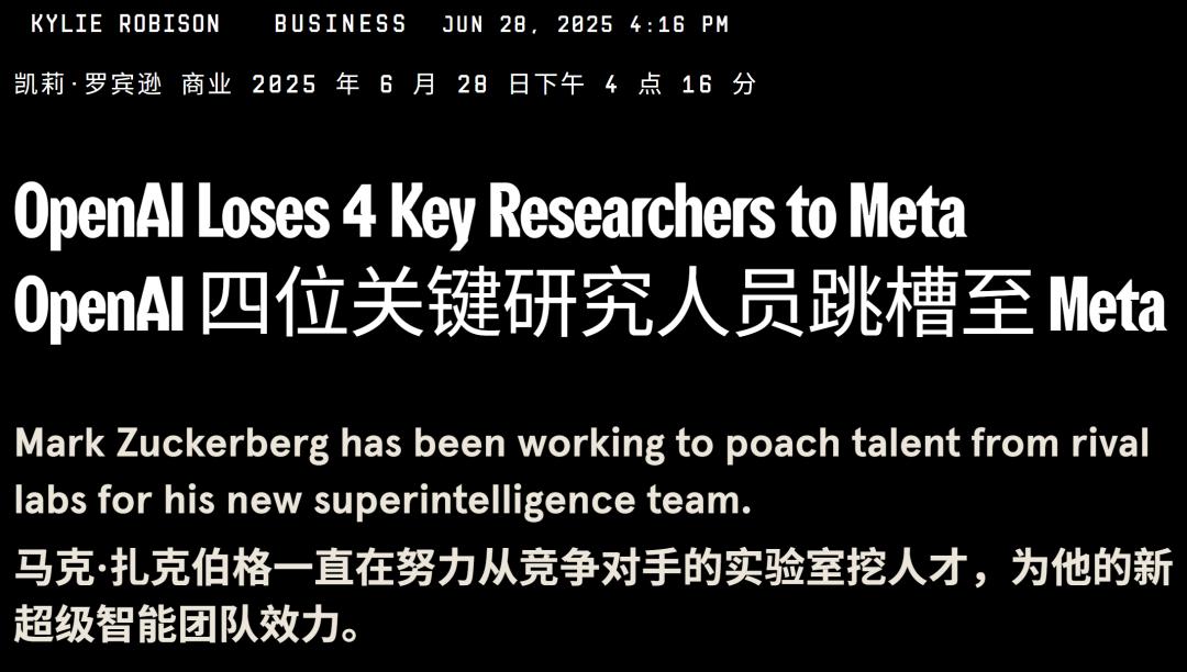 这一反常举措背后,是连续数月的疯狂工作与人才流失的阴影:Meta新成立的超级智能实验室(Meta Superintelligence Lab,MSL)正在挥舞巨额美元,挖角OpenAI的关键员工。