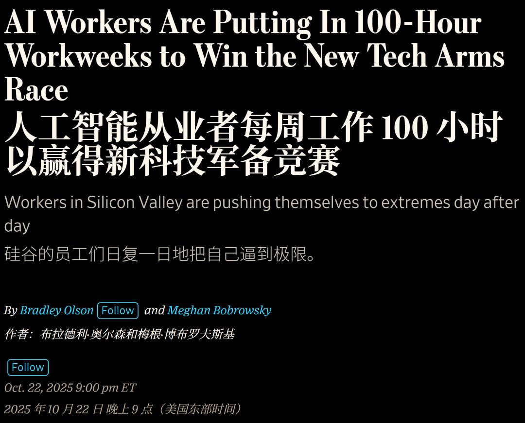 在硅谷顶尖的AI实验室里,研究员和高管每周工作80到100小时早已成为常态,许多人将这种状态比喻为战时状态。