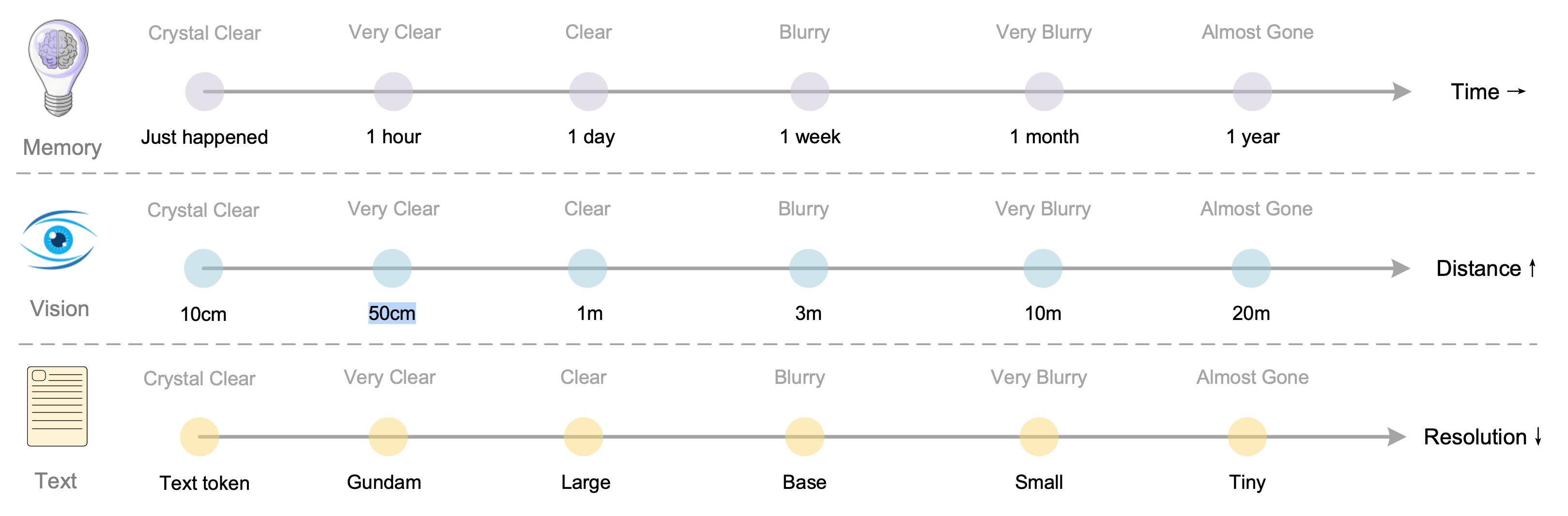 而且,DeepSeek论文说我们可以连续调节压缩率,在压缩率和识别精度之间平滑地做出权衡。关键来了,DeepSeek将这种动态的视觉压缩还与人类的记忆遗忘做了类比。