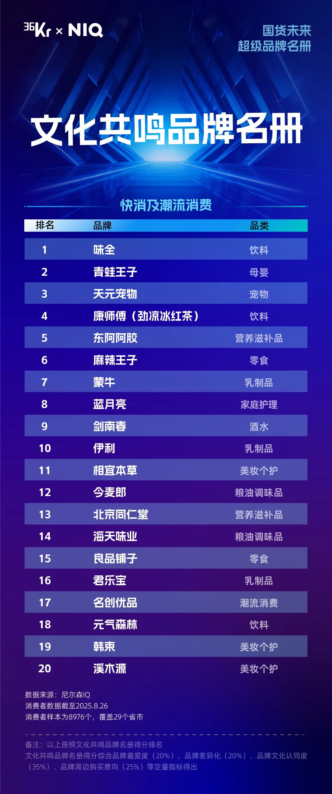 36氪与尼尔森IQ的此次携手,正是希望从数据与洞察出发,为国货品牌发展梳理出来自市场一线的坐标。当无数品牌在流量的红海中迷失方向,这份名册试图重新校准价值的罗盘——它提醒我们,穿越周期的不是爆款,而是价值;赢得尊重的不只是规模,更是技术;真正有影响力的品牌,在满足需求的同时,更创造意义。