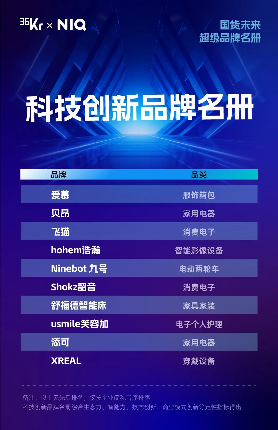 需要强调的是,“超级品牌”不仅是评选的结果,更是在用户选择和时代变迁中自然生长的产物。这是36氪与尼尔森IQ第一次合作推出“国货未来 超级品牌”名册,我们相信随着中国品牌的持续进化,明年这份名册也会发生很大改变,而今天的入围者,或许就是十年后引领中国消费走向的核心力量。
