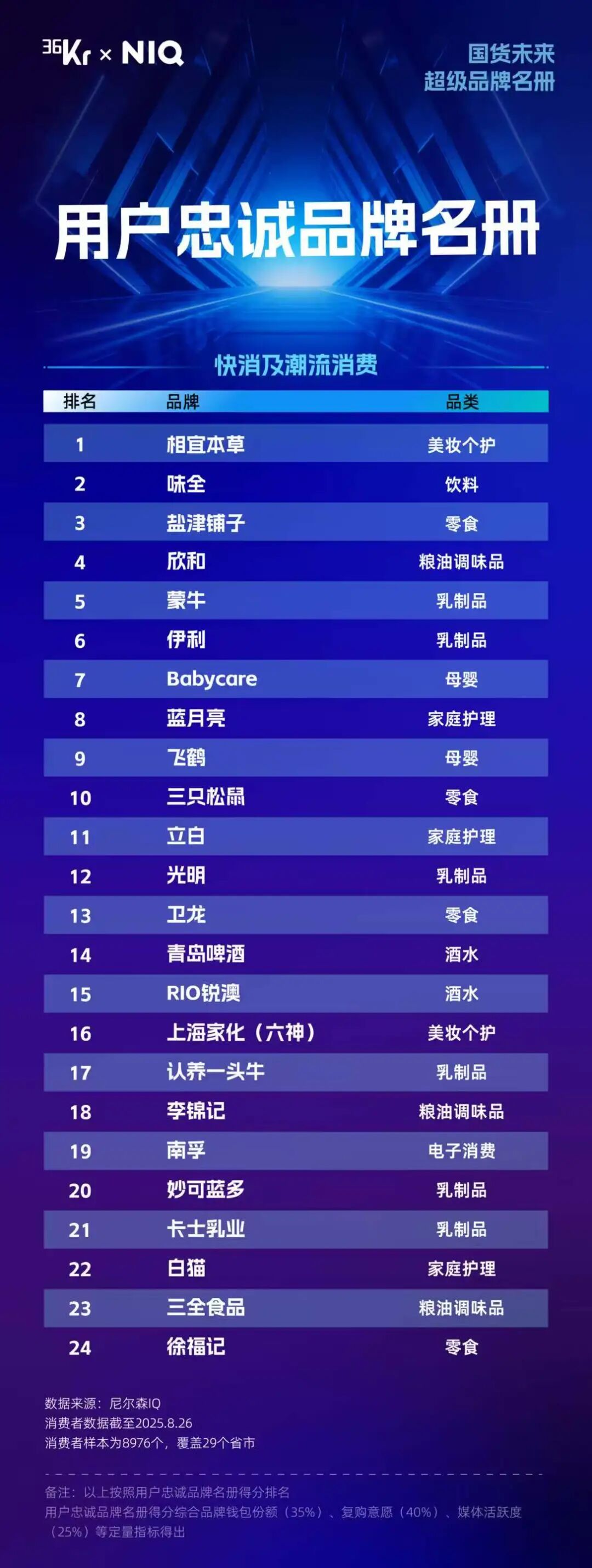 以下为36氪X尼尔森IQ“国货未来 超级品牌”完整名单: