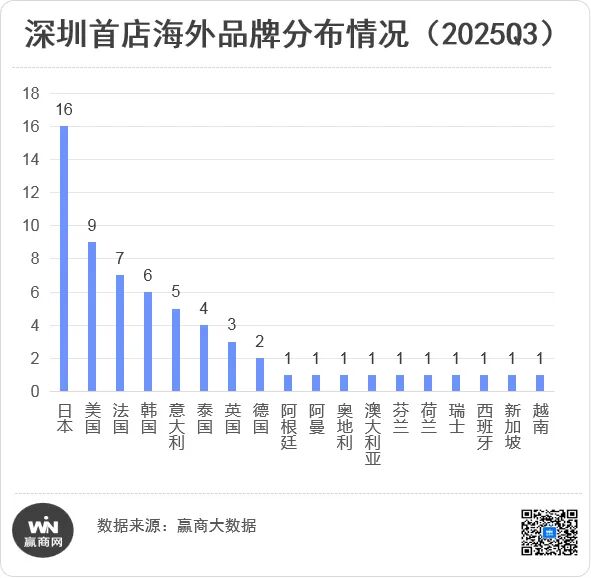 图2:2025Q3深圳首店海外品牌所属国家分布情况