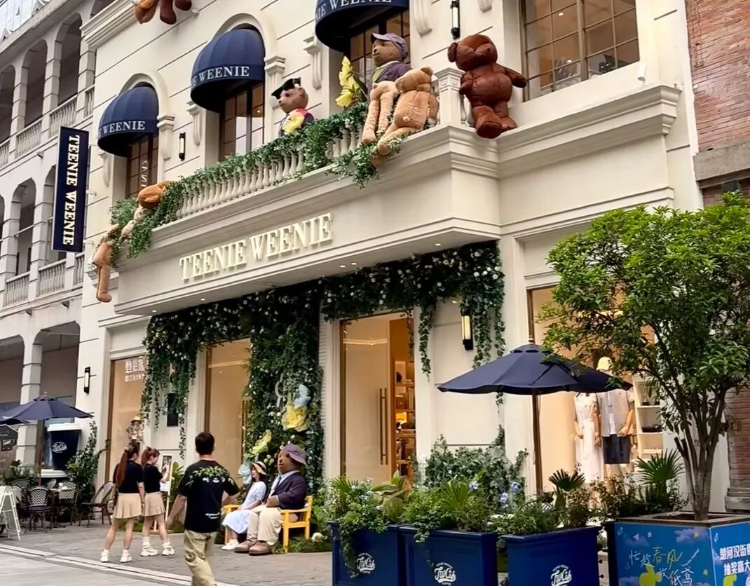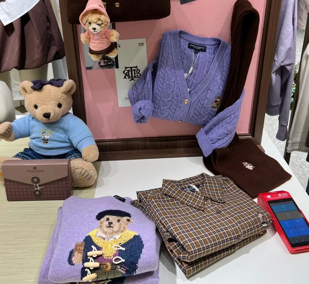 光是懂穿搭还不够,衣恋集团知道,想要真正成为用户不可替代的选择,IP才是重头戏,光这一招就堪称“服装界泡泡玛特”。 很多同行以为把衣服印上品牌logo就算成功,它却搞起了泡泡玛特的玩法:一口气干出 William和Katherine为代表的18只拟人化、个性鲜明的卡通小熊形象及其背后的小熊家族故事体系。 不得不说,这一招相当高明,很多人去它的店都是冲着“小熊”而去,因此他在中国又有一个相当接地气的名字: 小熊 。好听又好记,完美形成品牌记忆点。