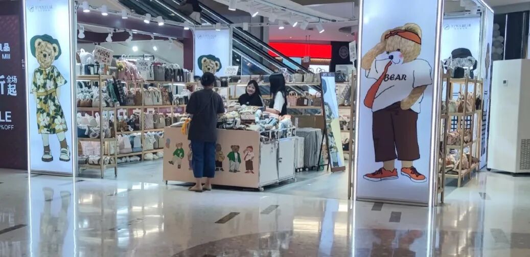 滥大街的小熊logo甚至还引来商场一层无数山寨店加入,让人误以为是“杂牌”。