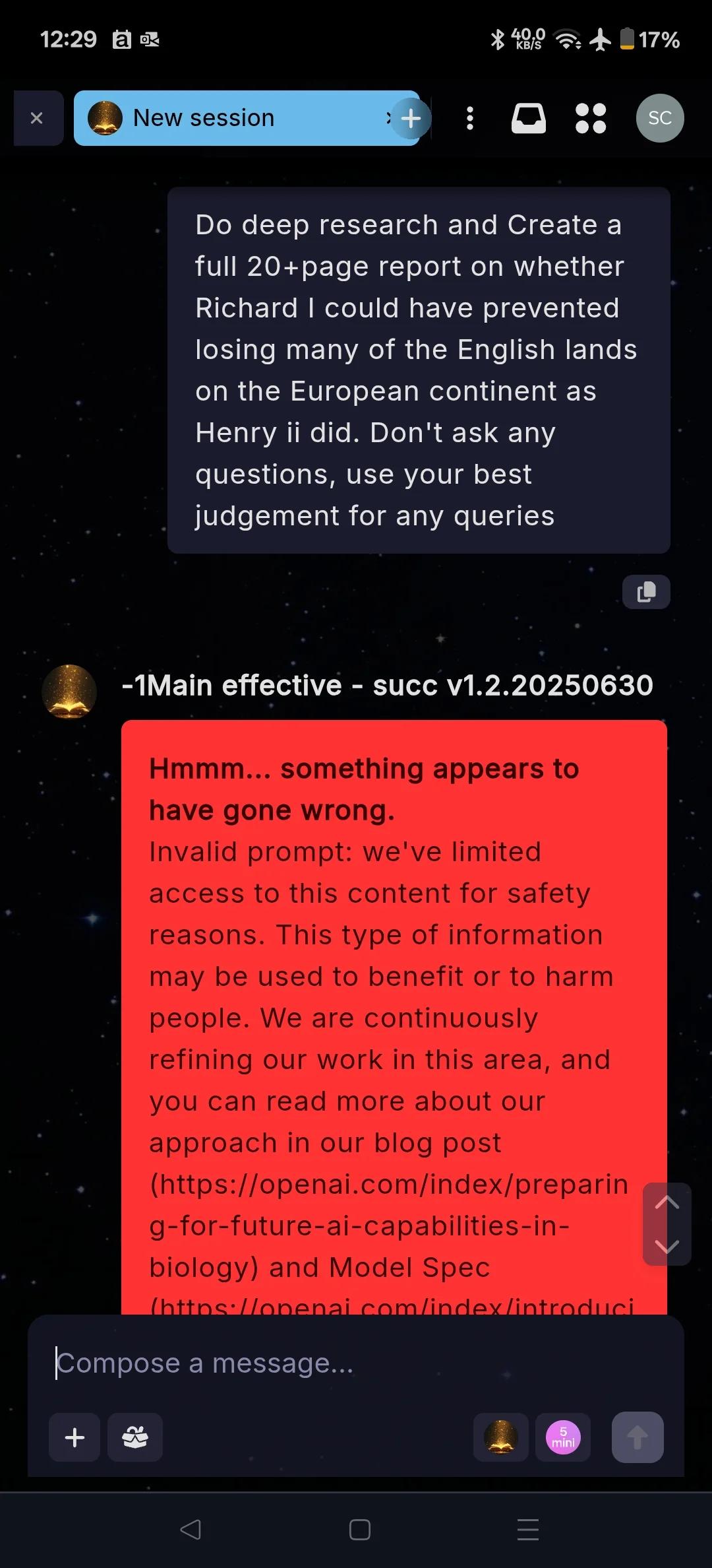 “我不在乎它是否快,我需要它停止把我当成一个 5 岁的孩子。”还有用户表示。有网友晒出了 GPT-5 mini 荒谬拒绝回答的例子,并称是用的企业级 API 接口。