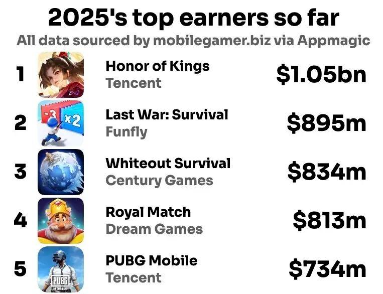 如今,它在中国市场拥有日活百万、月活亿级规模 —— 根据官方说法,其全球月活跃用户数已超过2.6亿,其国服日活跃用户数突破1.39亿。 在收入上,它仍能创纪录:2025年上半年是全球唯一一款营收破10亿美元的手游。