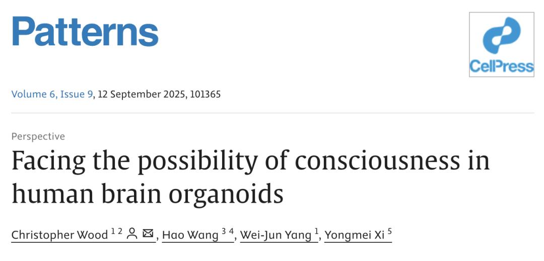 [1] Wood, C., Wang, H., Yang, W., & Xi, Y. (2025). Facing the possibility of consciousness in human brain organoids. PubMed, 6(9), 101365.