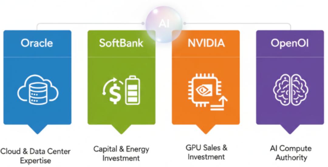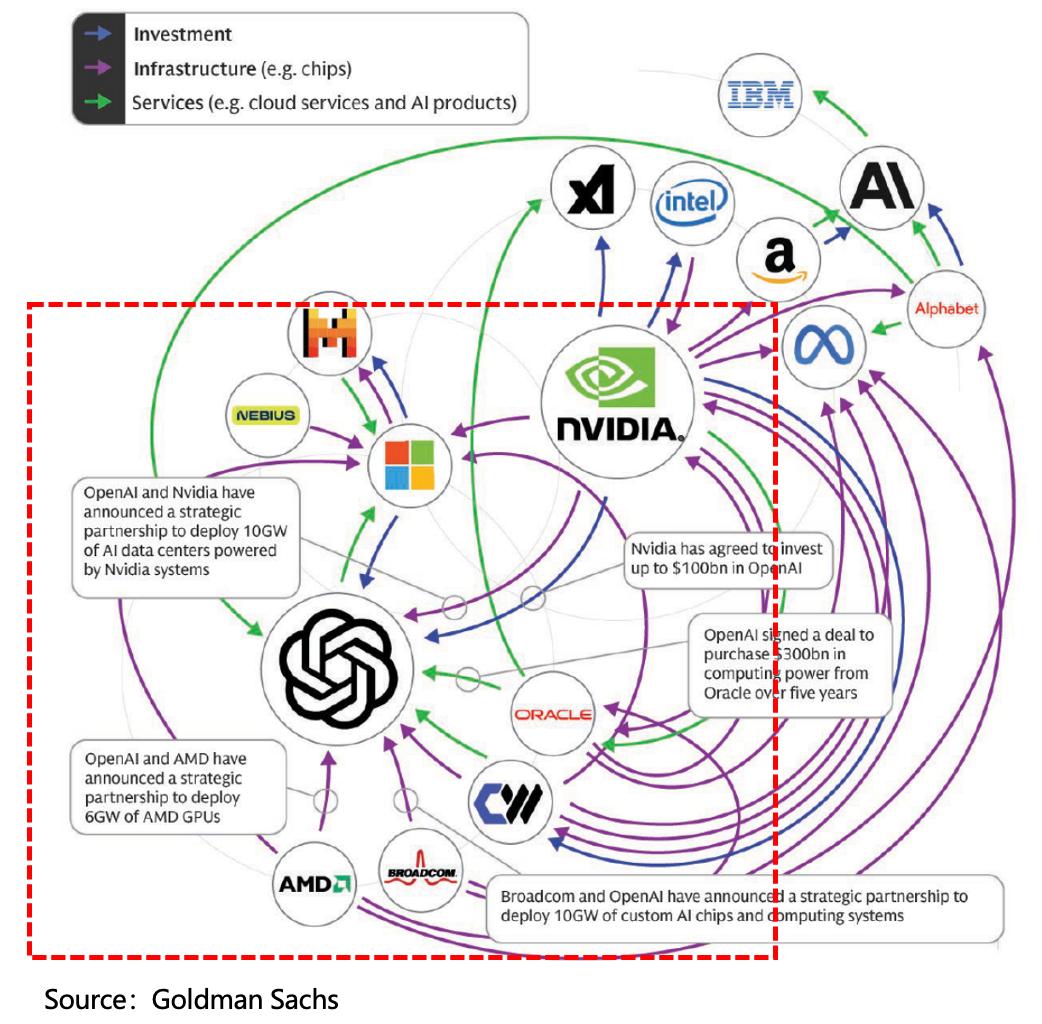 最复杂的合作生态,就是OpenAI的星际之门项目,它将OpenAI与Oracle、Nvidia、软银等公司做了深度关联,被市场诟 病 的“资金循环”、“算力重复叠加”就在于此。