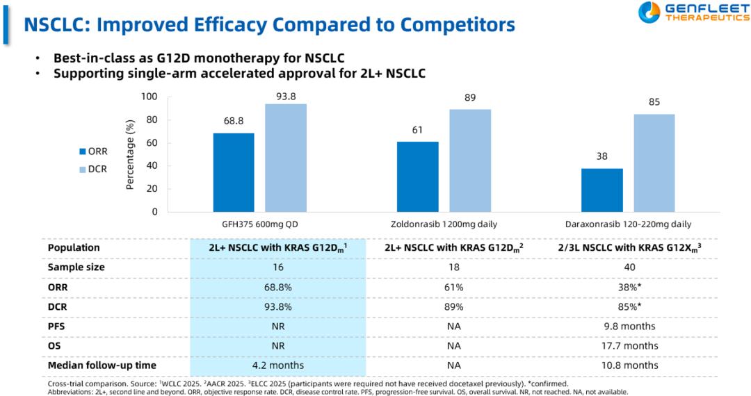 更具竞争力的是,GFH375的2期推荐剂量比多个国内外G12D抑制剂更低,这意味着在药物经济学层面,它比同类产品更有成本优势。