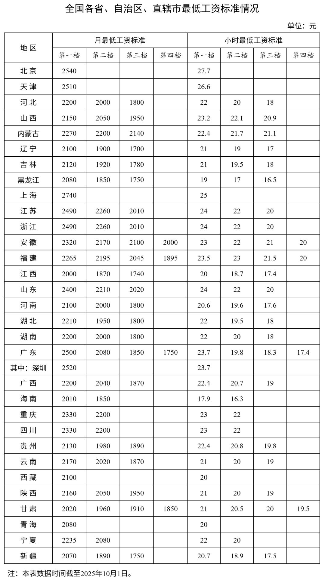 目前,还有一些省份的调整方案待正式执行。9月11日,江西省人社厅发文要求,“第一档”最低工资由2000元调整到2240元,“第二档”由1870元调整到2090元,“第三档”由1740元调整到1950元。从2025年12月1日起执行。