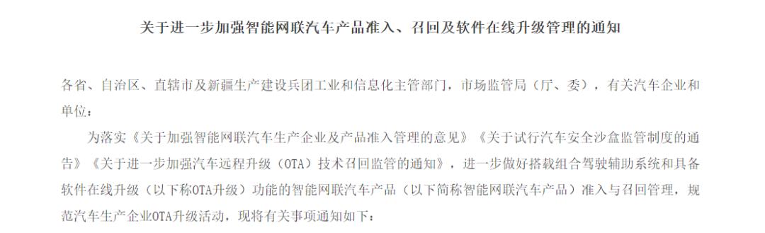 这些因素共同呼唤监管介入和新规出台。而顶层设计的出台则意味着中国智能驾驶正式由试点探索走向准入放行,在合法合规的轨道上迈出关键一步。