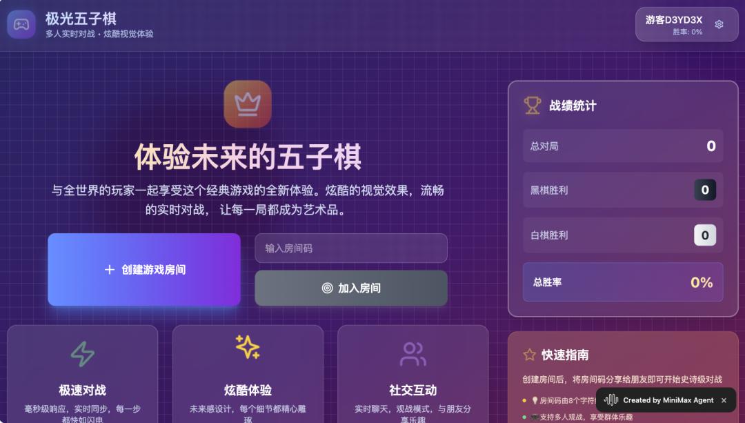 甚至有网友创作的在线五子棋游戏平台,不仅有游戏本体,还引入了在线对战、观战、在线聊天,甚至是用户注册等功能。