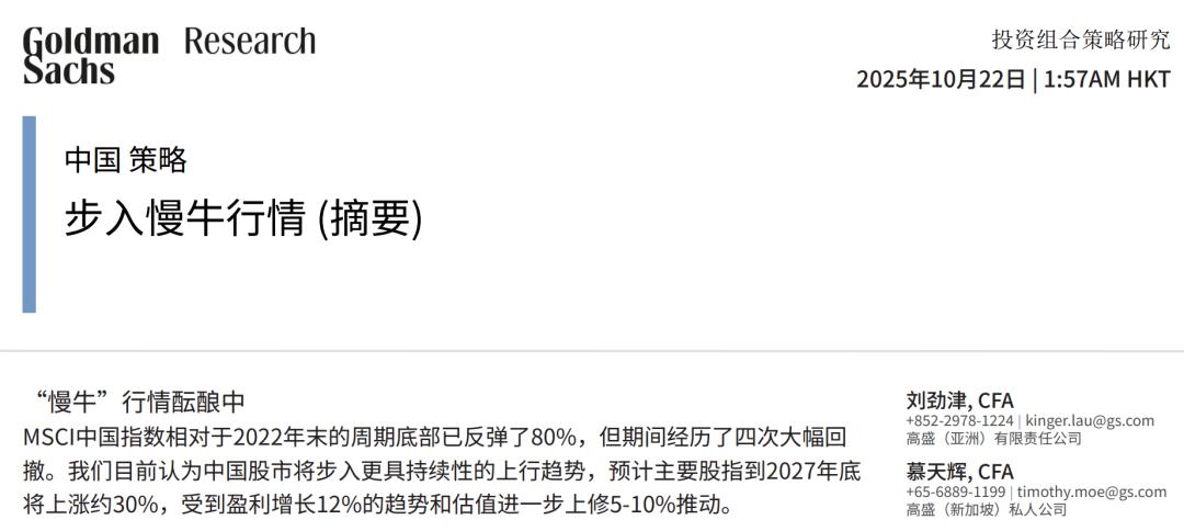 与此同时,海外投资者对中国股票兴趣渐浓,高盛、摩根大通继续看好中国股市。其中,高盛最新报告指出,中国股市将进入更为持久的“慢牛”行情!