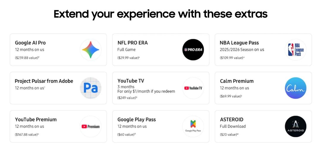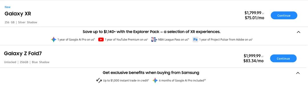 目前购买美版 Galaxy XR 会赠送一大堆内容订阅|三星官网