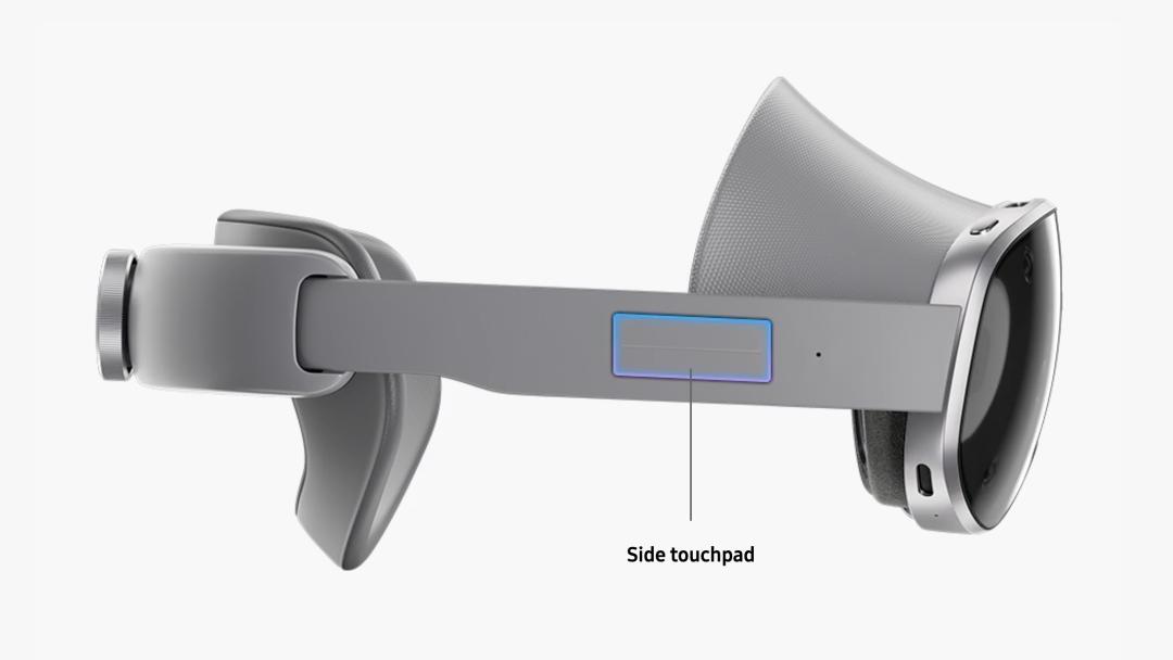 但这并不意味着 Galaxy XR 的可操作性有所下降。除了基于下视摄像头的手势识别,和眼罩内部的眼部追踪之外,Galaxy XR 还在右侧头带上保留了一小块触控板,给一些需要精确控制的场景留下了方案。