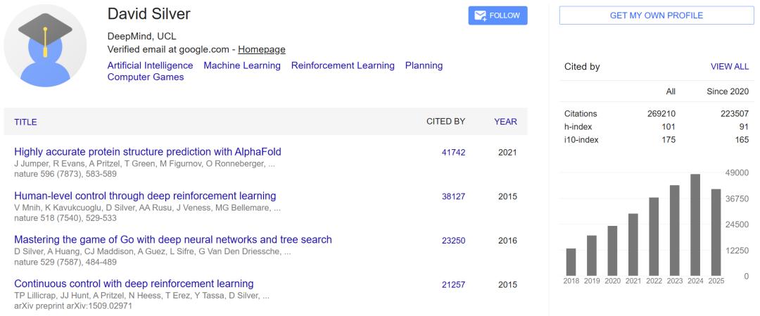 值得注意的是,该团队的负责人、通讯作者是强化学习领域的引领研究者 David Silver,他也曾领导了著名的 AlphaGo 项目,常被称为「AlphaGo 之父」。截至目前,David Silver 的引用量已接近 27 万。本研究共有四位共同一作:Junhyuk Oh、Greg Farquhar、Iurii Kemaev、Dan A. Calian。