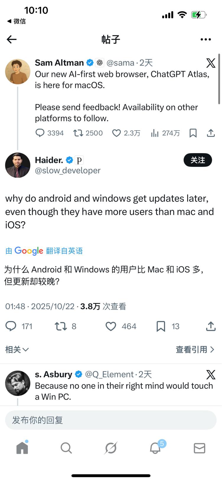 更重要的是用户群体的匹配度。macOS用户,特别是在创意、开发和技术领域的人群,通常被认为是“早期技术采用者”。他们更愿意尝试像Atlas这样颠覆传统浏览体验的创新产品,并能在产品发展初期提供宝贵的反馈。