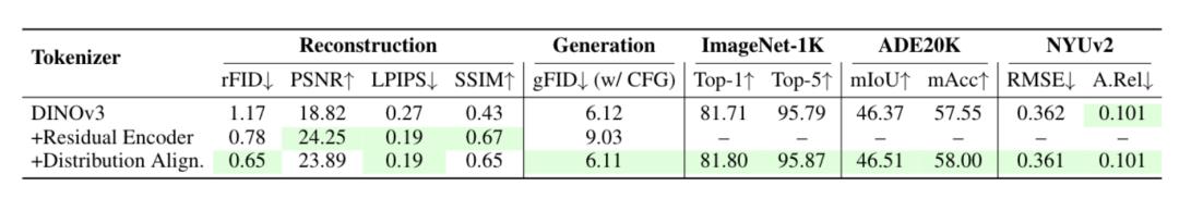 但团队也发现,DINOv3提取的特征偏重于宏观语义,会丢失颜色、纹理等高频细节,因此又专门设计了一个轻量级的残差编码器来进行细节补充,针对性地学习这些被忽略的细节信息。