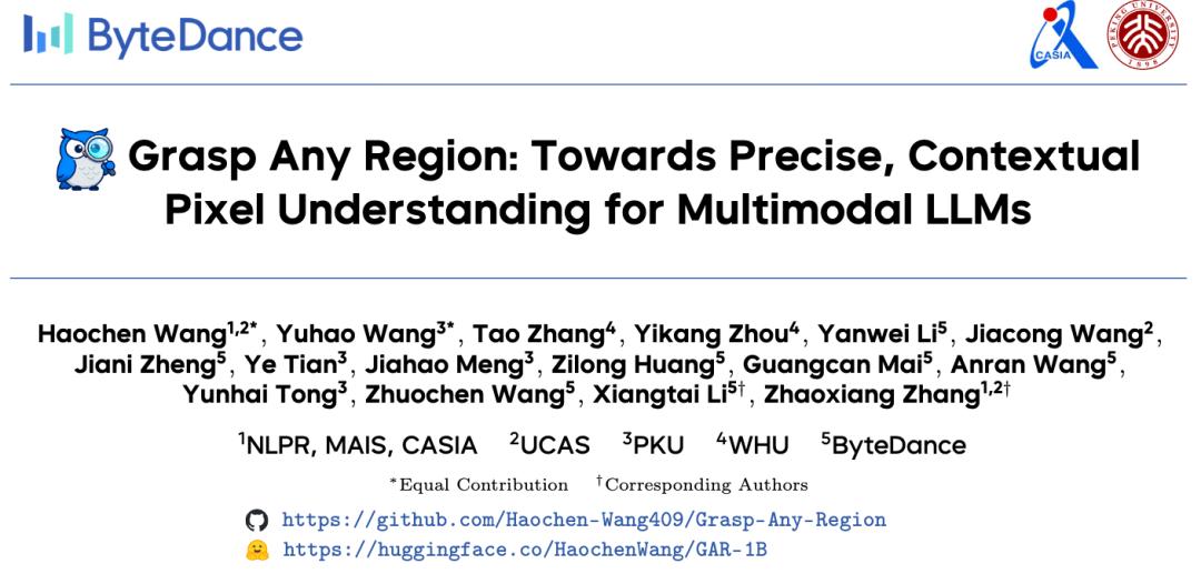 那么自然图像是否也能作为文本的压缩呢?中科院&字节联合提出的「Grasp Any Region」提供了新思路。