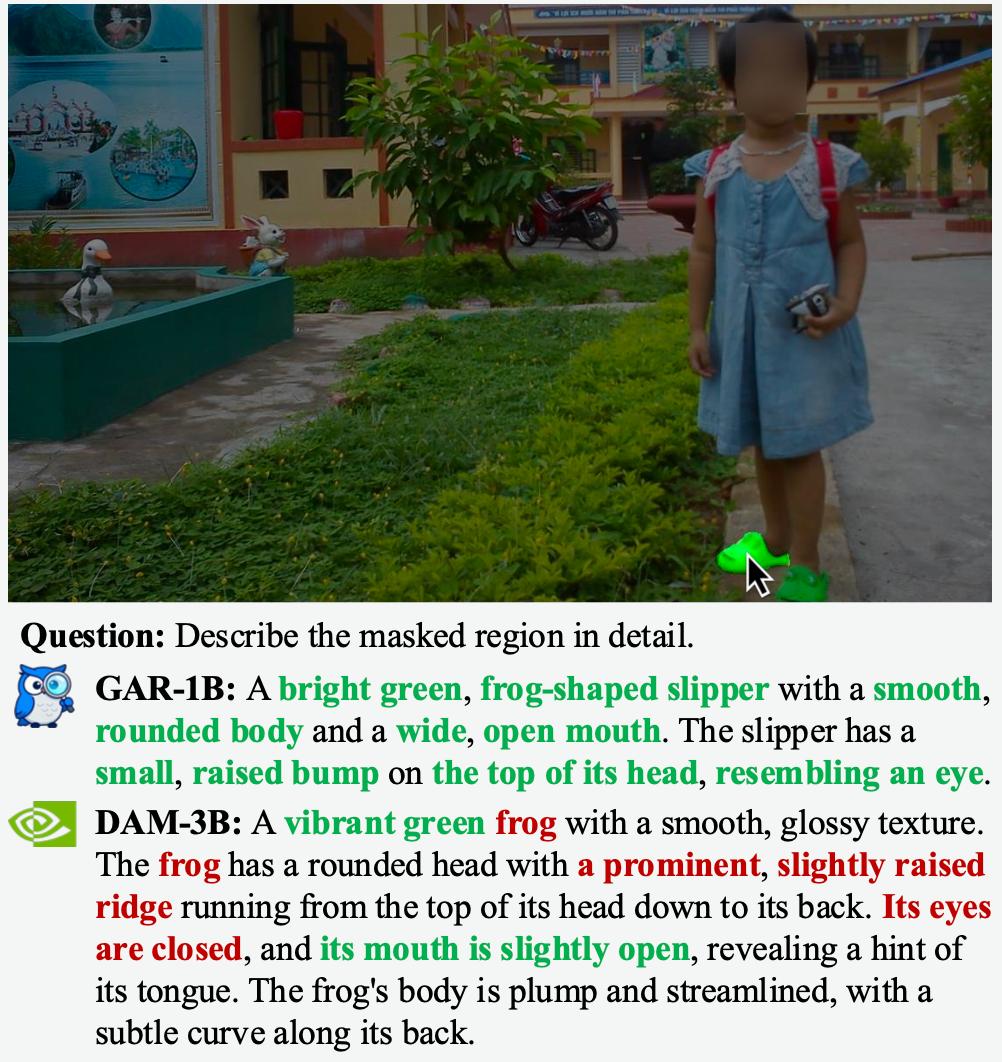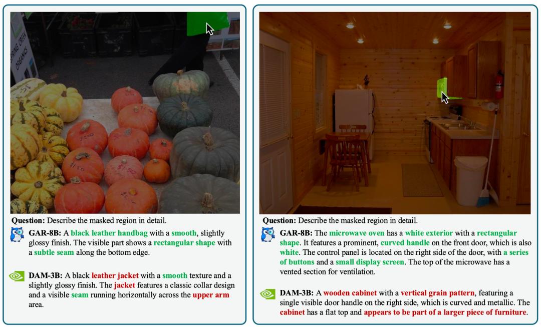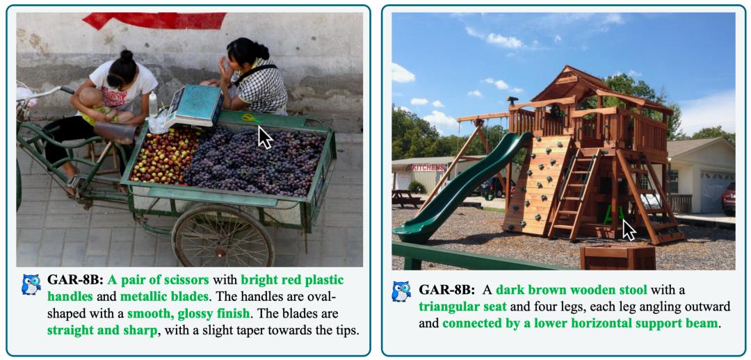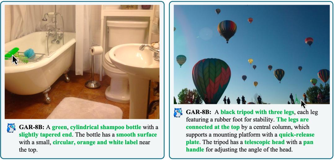 相比之下,GAR能够对用户指定区域实现精确的理解,产出更准确的描述。