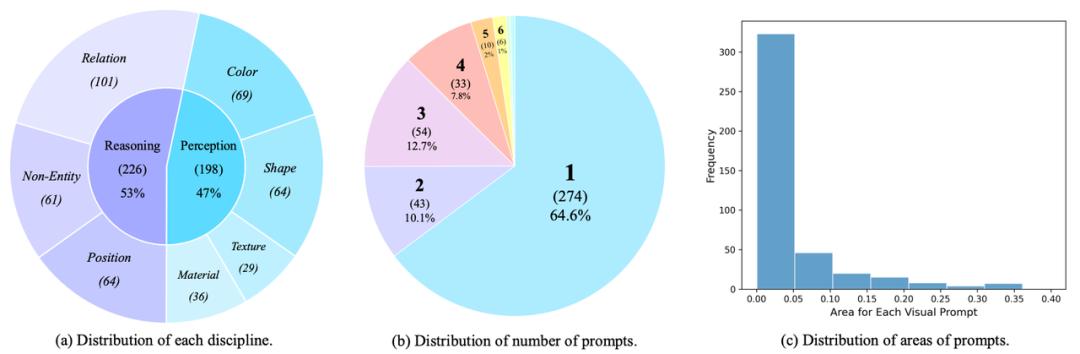 2、通过多 visual prompts 设计提升问题难度,例如部分问题的提示词数量甚至达到 7 个与 9 个;