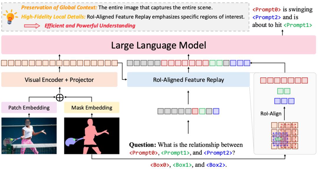 同时,回放后的特征能为后续语言模型提供用户指定区域的“高细节、高分辨率”的特征表示,助力其实现细粒度理解。