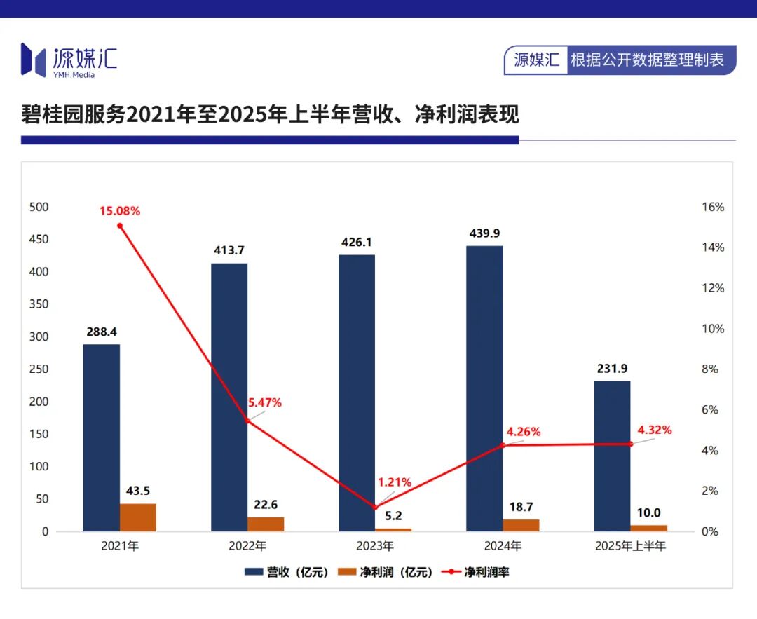 wind数据显示,28家港股、A股物业管理上市公司,总营收从2021年的1927亿元上涨到2024年的2499亿元,2025年中期为1267亿元;但净利润率却呈断崖式下跌走势,从9.9%跌至4.0%,2025年中期为7.1%。