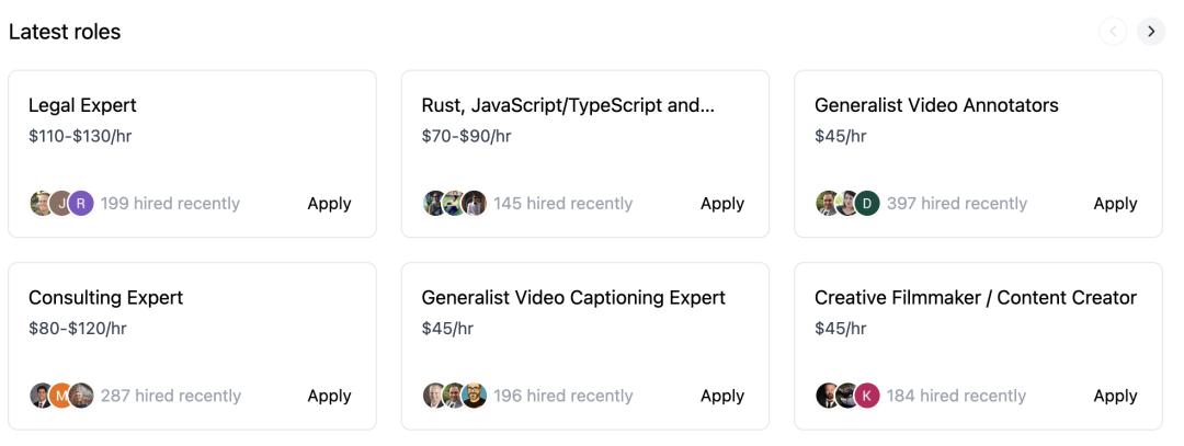 这是因为随着模型能力提升,其需要专业领域人才在短期内对其进行评估,这就需要AI企业快速找到对应人才并提供临时职位。