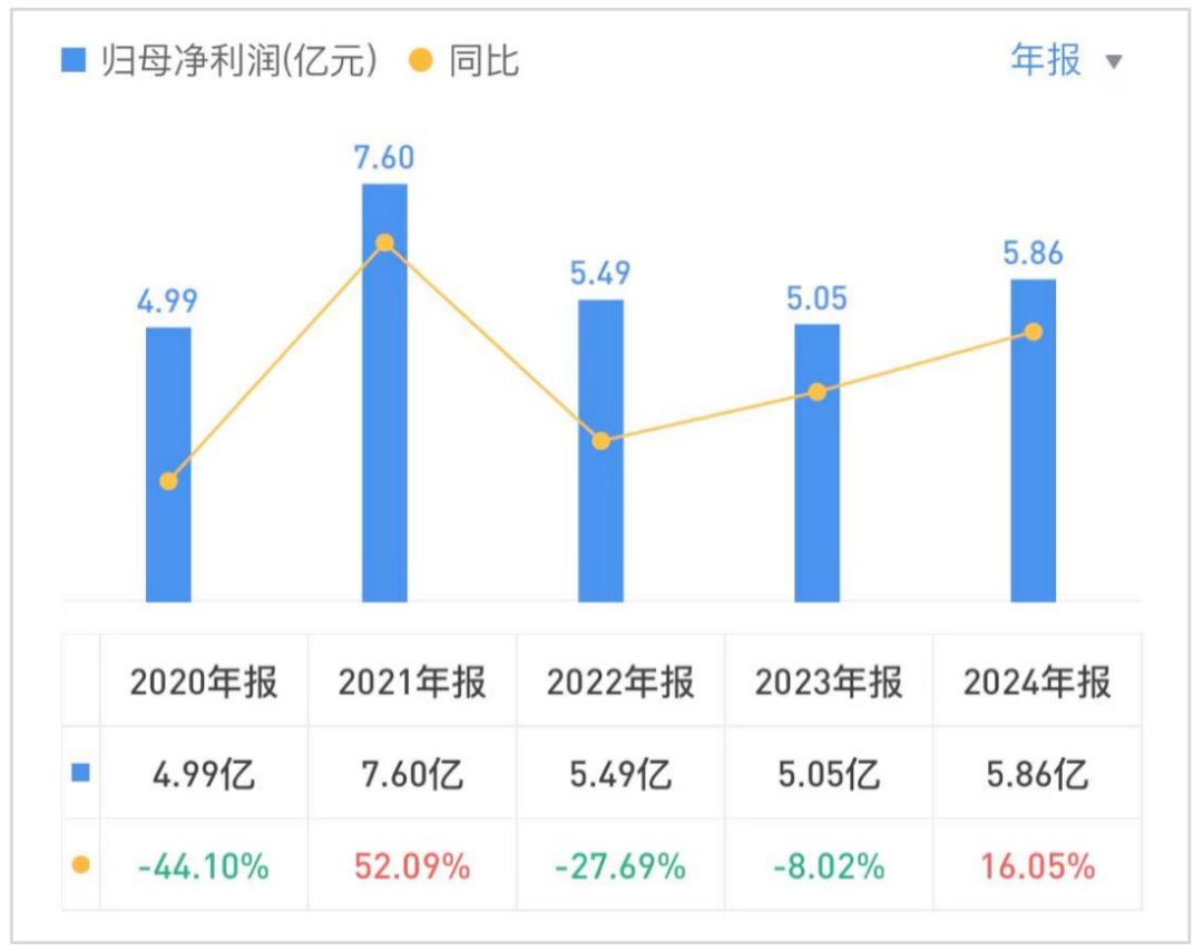 尽管在过去的2024年大商股份录得净利润5.86亿元,同比增长16.05%。但不能忽视的是,大商股份的这一业绩数据,在此前已连续两年“倒车”,其2022年、2023年的净利润分别为5.49亿元、5.05亿元,同比下滑27.67%、8.02%。