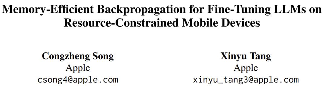 论文标题:Memory-Efficient Backpropagation for Fine-Tuning LLMs on Resource-Constrained Mobile Devices