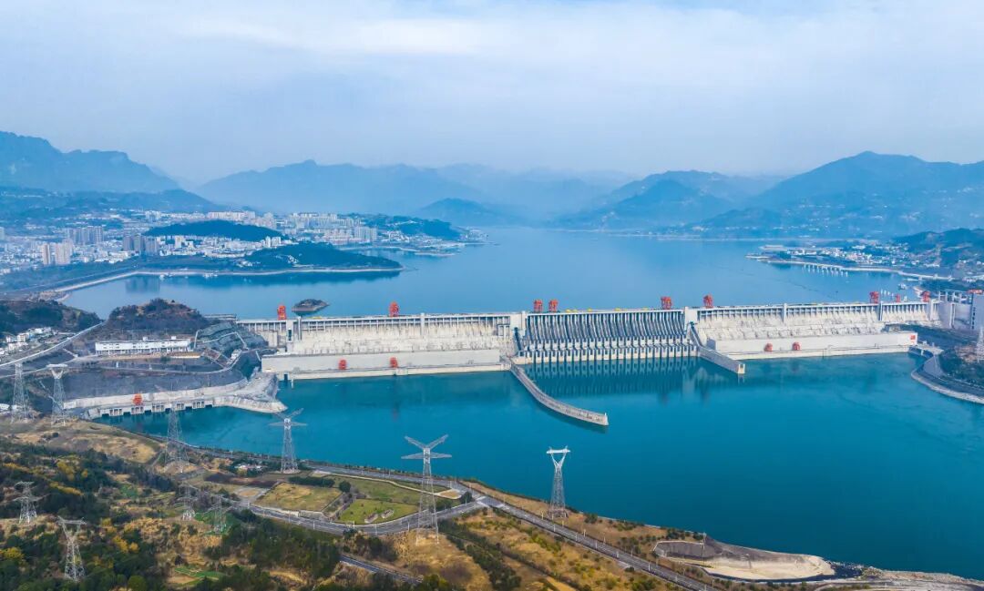 乌东德、白鹤滩、溪洛渡、向家坝、三峡、葛洲坝6座梯级水电站沿长江干流自上而下排列构成了世界最大清洁能源走廊,图为三峡大坝和外送输电线路 新华社发(郑家裕摄)