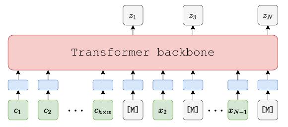 另外,因为 latent tokens 是连续向量,传统分类头无法建模其分布,因此在 Transformer 输出后接入扩散模型头(小型 MLP 实现),用以预测掩码的 latent tokens 分布(如下图所示)。