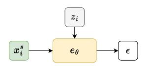 去噪网络 eθ 根据 zi 和 xsi 预测噪声 ϵ