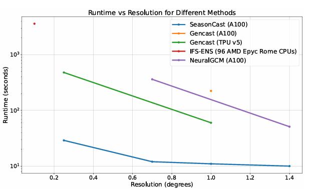 不同方法生成未来 15 天预报时的运行时间与分辨率对比