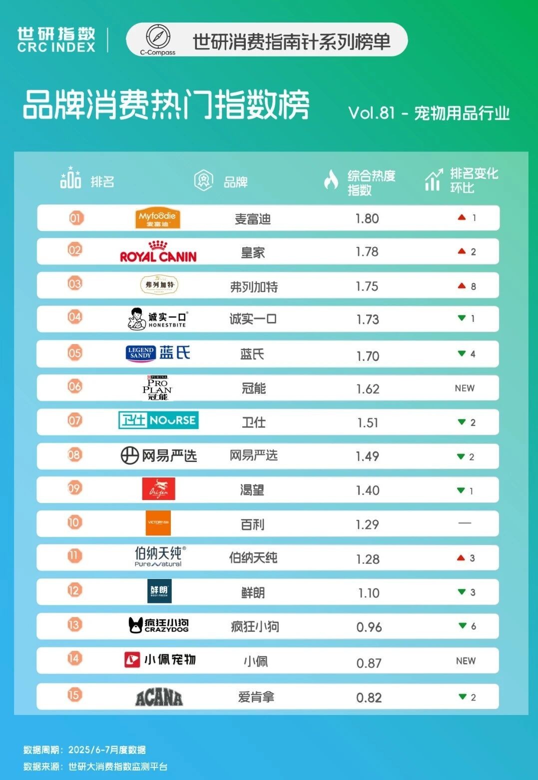 宠物粮高端细分内卷,智能用品全屋发展|世研消费指数品牌榜Vol.81