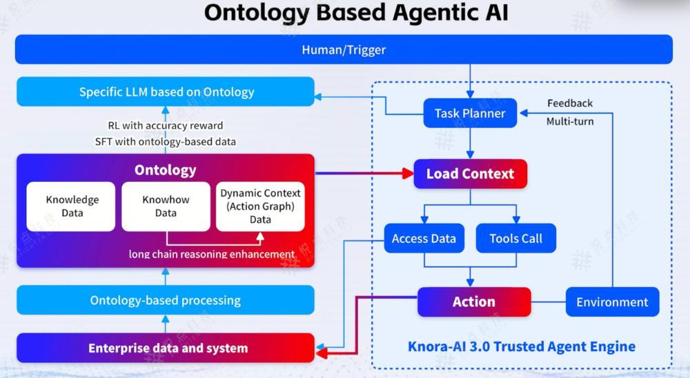 Ontology不仅仅是数据整合的框架,更是让AI能“理解”并“执行”的关键。AI驱动的动态本体管理工具集合,是高效、准确构建业务本体模型的关键,包括专业知识、动态本体、业务上下文、实时计算等多种核心能力。