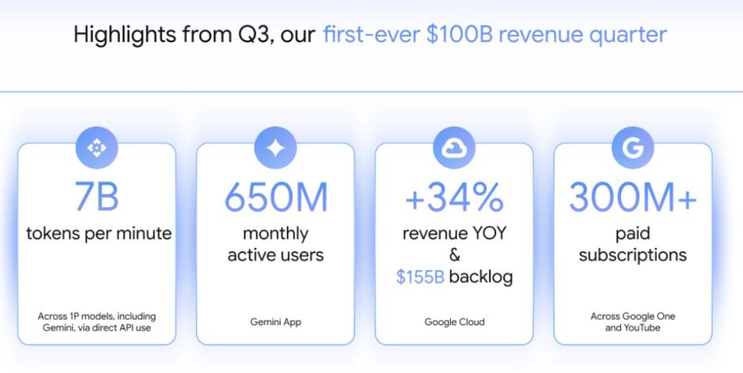 谷歌营收被Nano Banana带飞,季度首破千亿美元,Gemini APP月活6.5亿