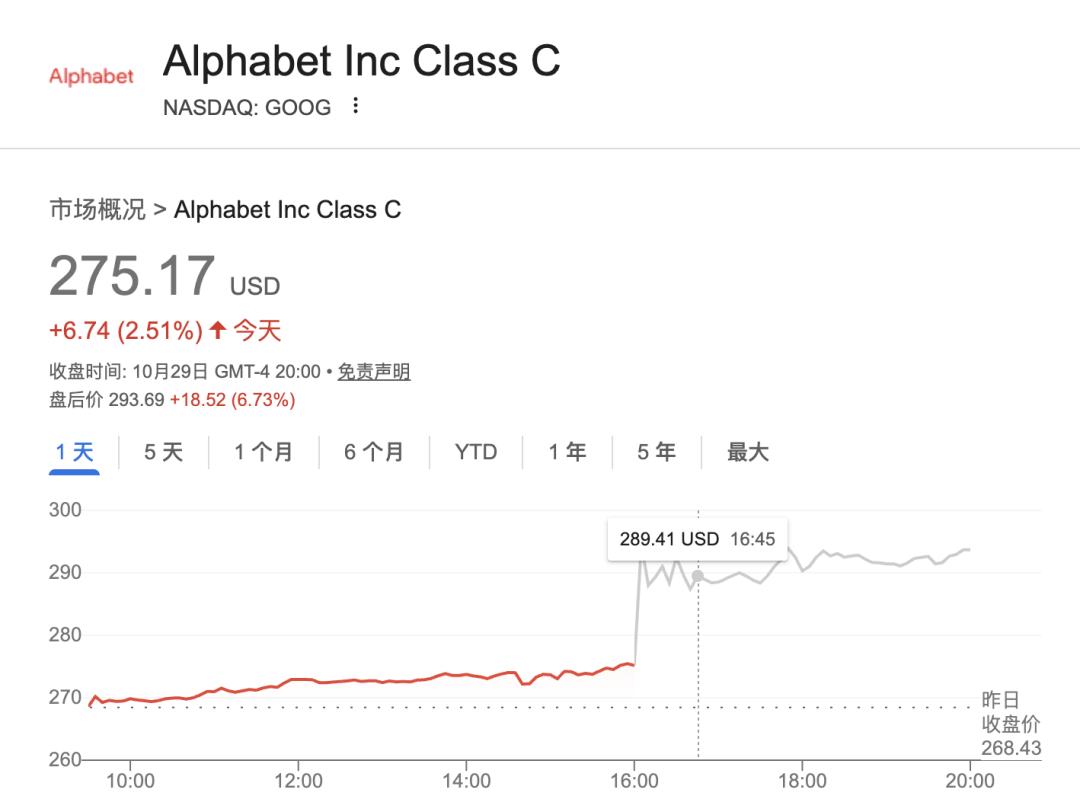 财报发布后,谷歌的股价在盘后猛增,达到每股293.69美元,以此计算,市值达到了3.55万亿美元,增长了3000多万美元(超2万亿人民币)。
